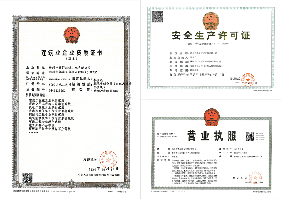 林州市泰昇建設工程有限公司始于1980年初,正式成立于2016年3月1日,注冊資金5000萬元,公司地址位于著名的“建筑之鄉”河南省林州市,是林州人創立的一家有著四十多年發展底蘊的專業化、標準化建筑工程公司。 公司現有員工376人,各類專業技術人員89人,其中一級建造師6人,二級建造師18人,擁有中高級職稱的工程技術和工程管理人員27人,初級技術管理人員38人。 “精細管理、精準經營,精益求精打造精品工程;為人樸實、工作扎實,踏踏實實做實企業發展?!边@是泰昇人在艱苦的創業過程中磨礪出來的企業性格。